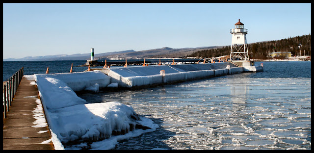We had wandered around the lake front on Friday, taking pictures in a bitter wind, but when we went back down on Saturday morning we were surprised to see that half the bay had frozen over during the night. It was also a nice blue sky on Saturday, so the pictures didn't look like black and white shots.